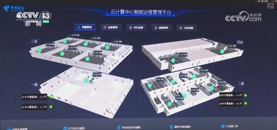 r不只是苏州,在内蒙古的这个信息园,智能调度大厅屏幕上显示着50万台服务器的运行情况和机房环境信息。供电和制冷,全都由智能运维系统自动调节。