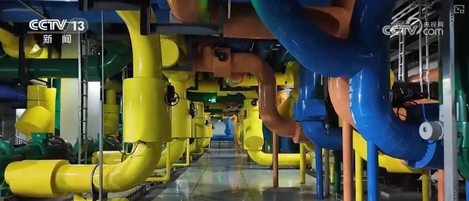 r工作人员提到的PUE,指的是电能利用效率。数值越接近1,表明在散热等辅助设施上消耗的电力越少。为了更高效用电,这里还用上了热管多联系统,把多台冷机并机整合,为机房集中供冷。